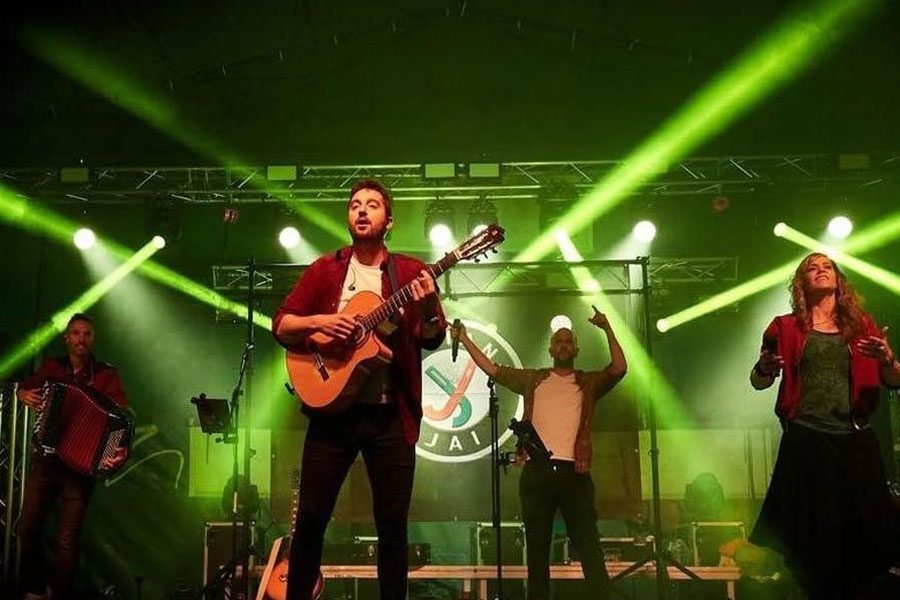 Canciones que han marcado épocas. Un recorrido por la música de nuestro pueblo… Desde las melodías tradicionales del cancionero popular hasta la música de nuestros días, pasando por el folk, las canciones de cantautor, el pop y rock vasco, y las versiones de los grupos de verbena… Jaian Jai lo componen Marta Aldaba, Mikel Alcasena, Karlos Bidondo, Jorge París y Gorka García.